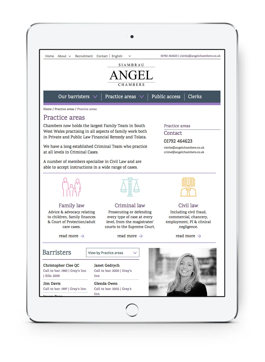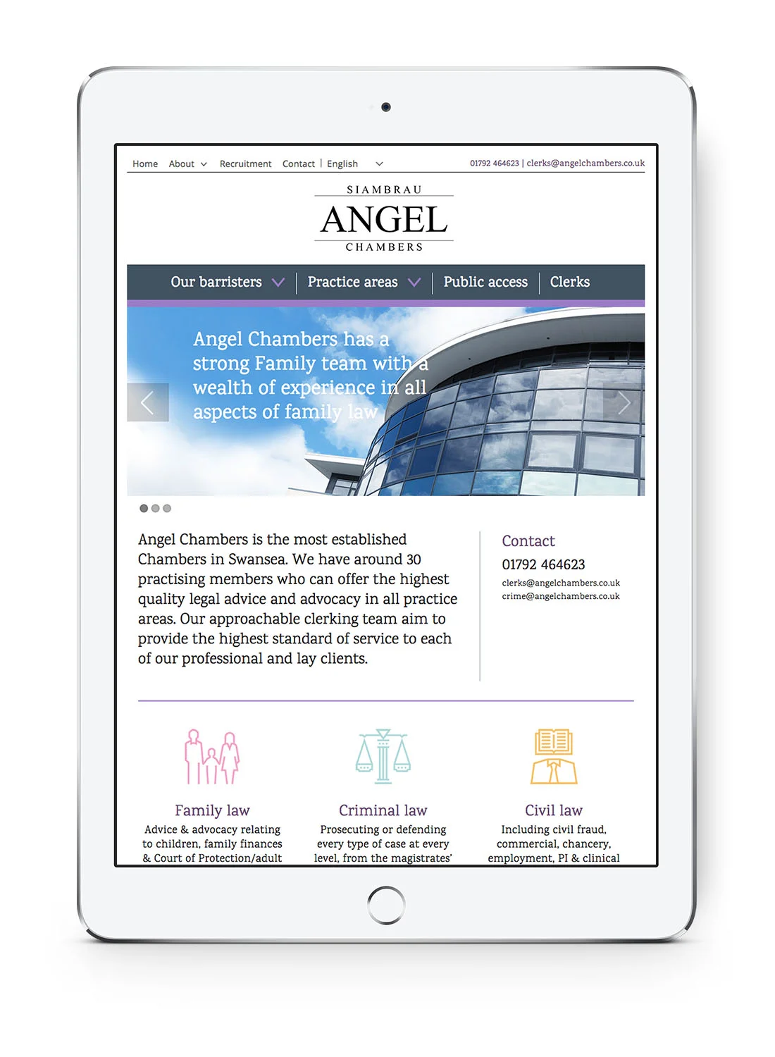 Its existing brand and online presence did not translate this, nor did it function as effectively as Chambers wanted it to. We were brought in because of our strong track record in the legal sector, to reposition Angel Chambers as having strong roots, but with an eye firmly on the future, and to translate this through an innovative, fully responsive and bilingual website that worked hard in the sector.